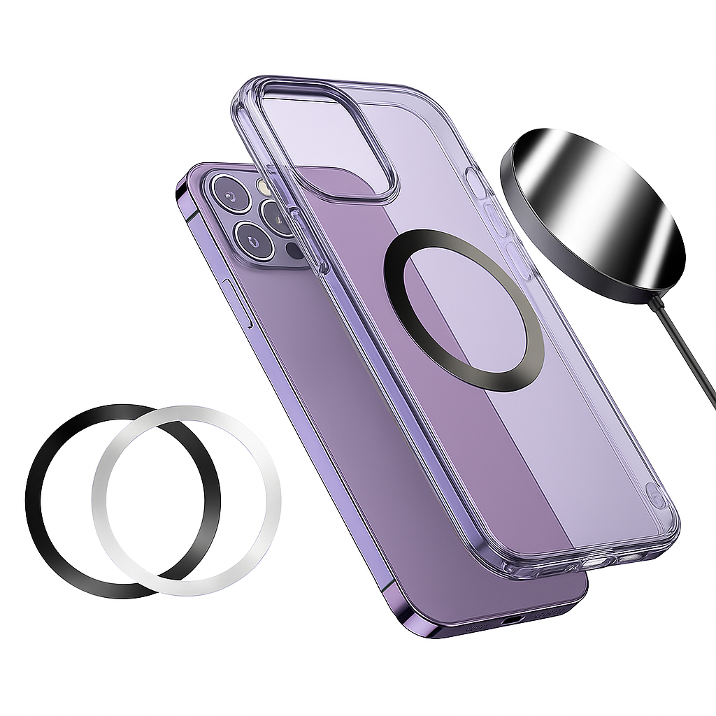 Spoznajte magnetni obroč za brezžično polnjenje MagSafe – popoln dodatek, s katerim bo vaša pametna naprava združljiva z MagSafe polnilci in magnetnimi nosilci. Ta izjemno tanek kovinski obroč zagotavlja močno magnetno povezavo med vašim telefonom ali ovitkom in napravami MagSafe, ne da bi vplival na dizajn ali funkcionalnost vaše naprave.